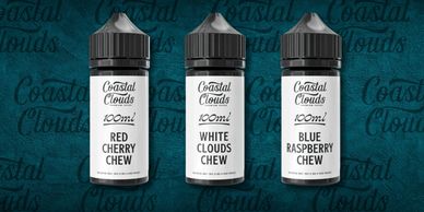 If you are like us, you've been excitedly waiting for Coastal Clouds newest flavor release for months now. To our surprise, they not only have dropped three new flavors, but you can now get them in 100mL bottles! We are so excited to introduce to you three new 100mL Coastal Clouds Premium Vapor e-juices: Red Cherry Chew, White Clouds Chew, and Blue Raspberry Chew!